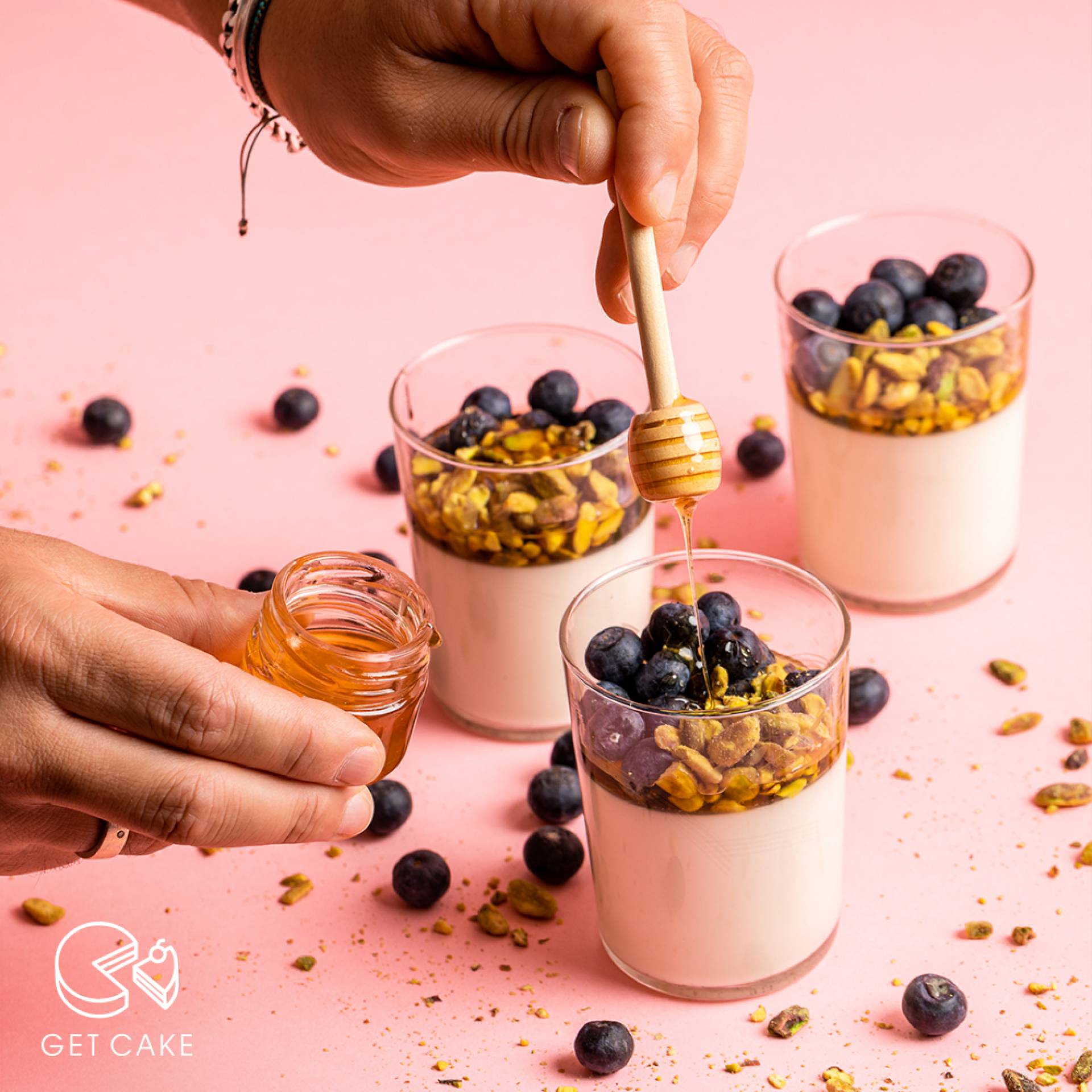 לפני ההגשה יוצקים מעט דבש מעל ומפזרים איזה תוספת שבוחרים.