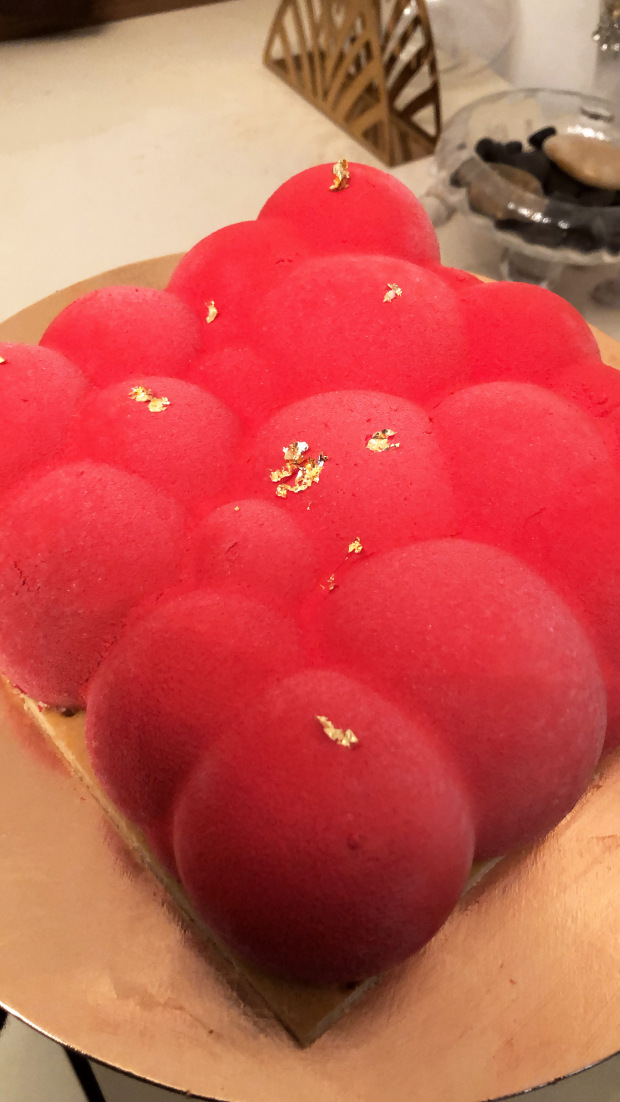 ריסוס שוקולד אדום קטיפה ועלי זהב.