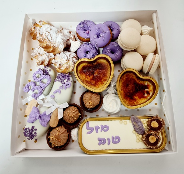 מוב פררן. מיני דונאטס.מקרונים.פחזניות.נשיקות.מיני מגנום העשוי מעוגת שוקולד טעימה. קרם ברולה. מיני טארטלט שוקולד וקרם קרמל