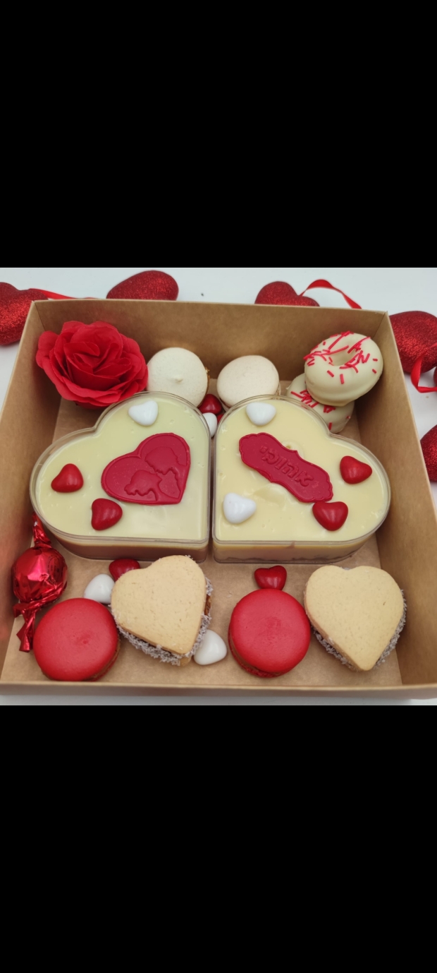 מארז המכיל 2 מוסים בטעמים לבחירה, 4 מקרונים, 2 אלפחורס ו2 דונאטס