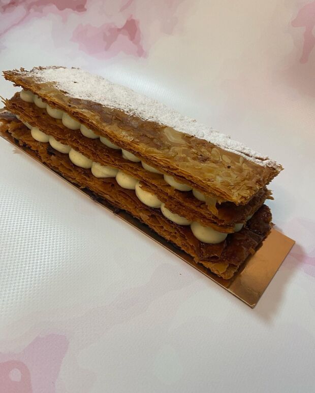 שכבות של בצק עלים וקרם דיפלומט