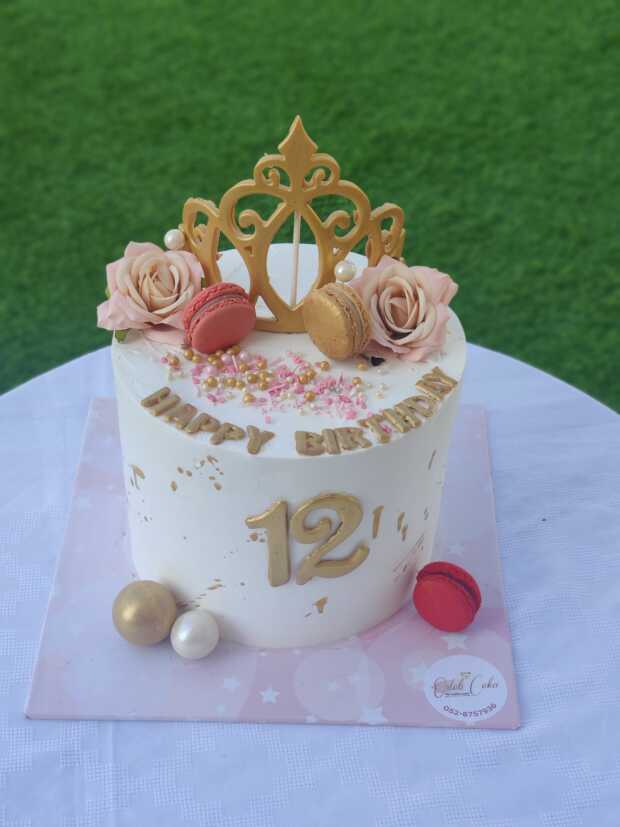 עוגת בת מצווה קלאסית ויפה עשירה בקרם מפנק כתר ואלמנטים