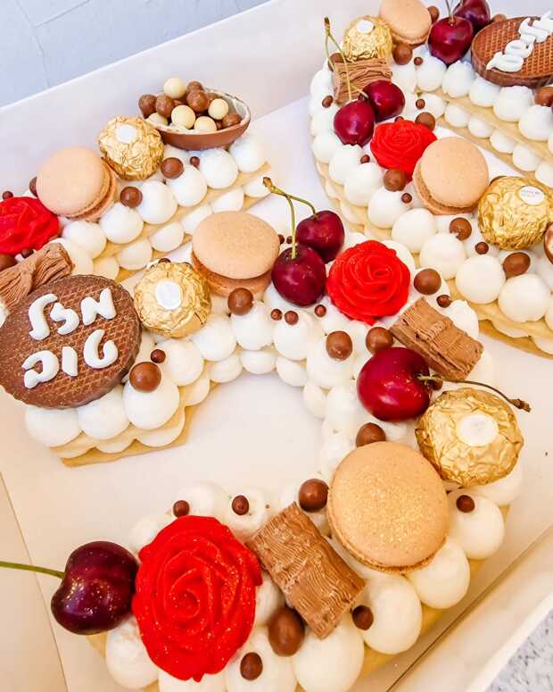 בצק פריך שקדים, קצפת ופירות או שוקולדים (או שילוב של שניהם)
