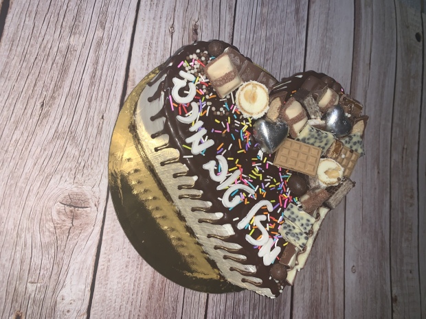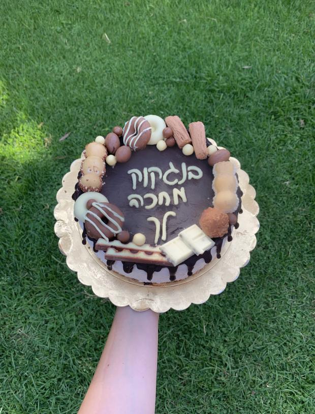 עוגת מוס מושלמת לאירועים במגוון טעמים לבחירה. ציפוי של ים שוקולדים מובחרים וכיתוב 🤍