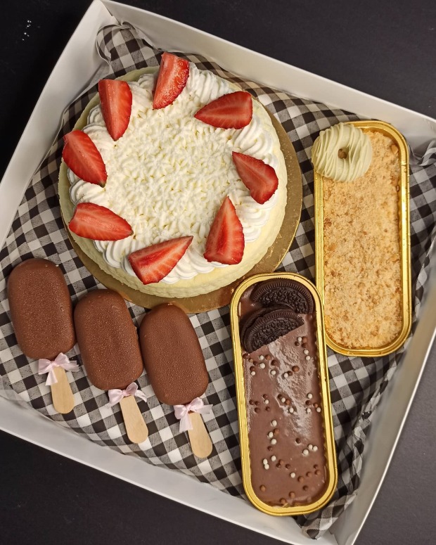 המארז כולל עוגת גבינה אפויה, מוס אוריאו, גבינה פירורים ו2 מיני מגנום